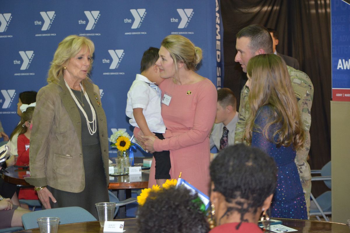 After prepared comments, Dr. Biden mingled with the crowd and had private conversations with the spouses and children.