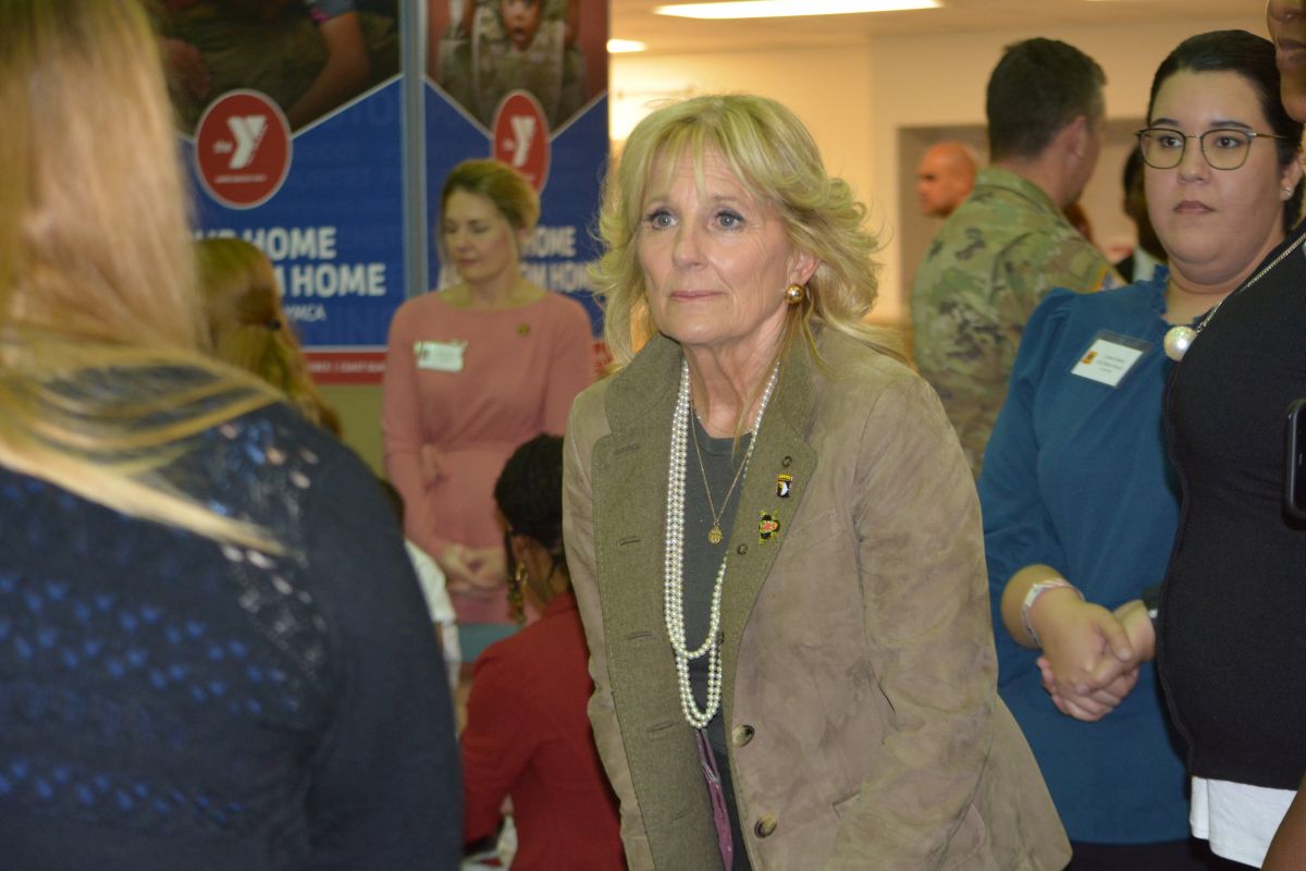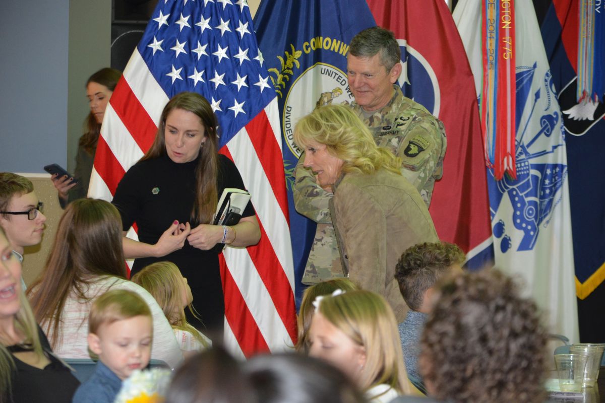 FORT CAMPBELL, KY (CLARKSVILLE NOW) – First Lady Jill Biden visited Fort Campbell Wednesday to speak with the families of soldiers deployed to Europe in support of NATO during Russia’s invasion of Ukraine.