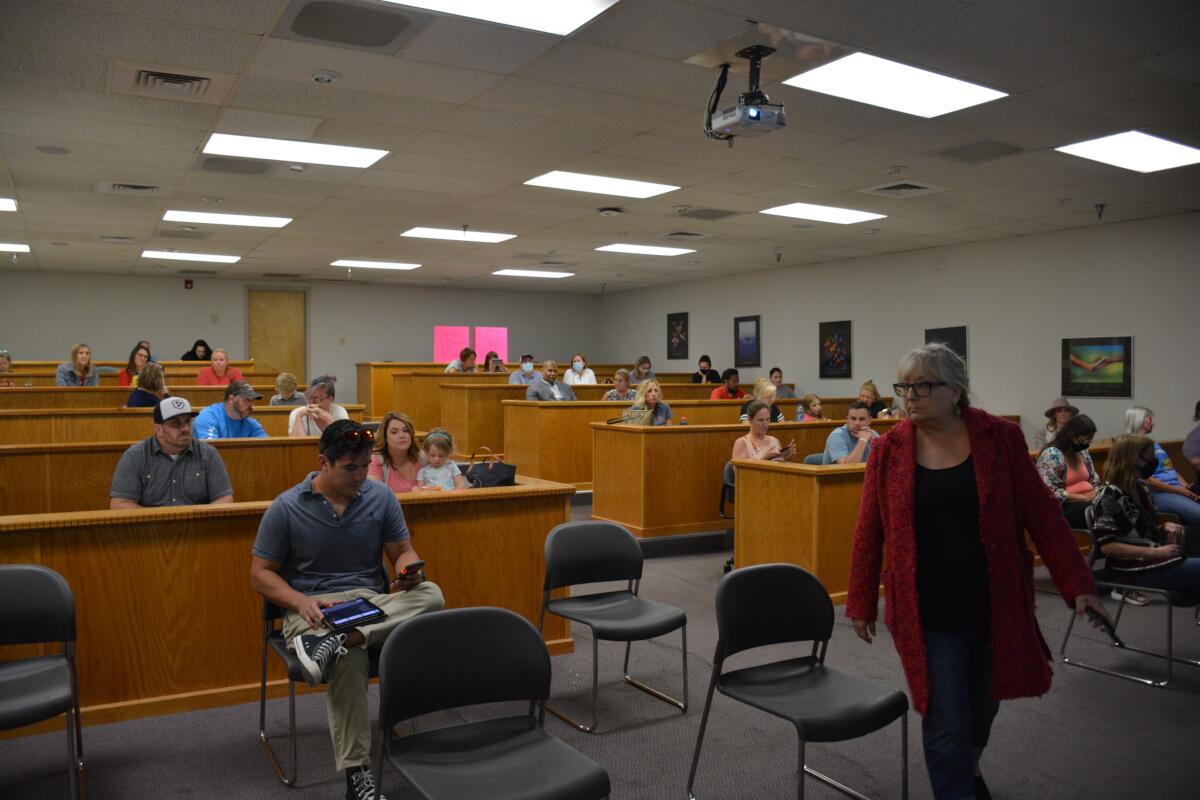Callie Cook, who was the first to publicly take issue with the board’s public participation policy in May during a protest at a meeting, told the board she was glad so many people had shown up to the meeting.