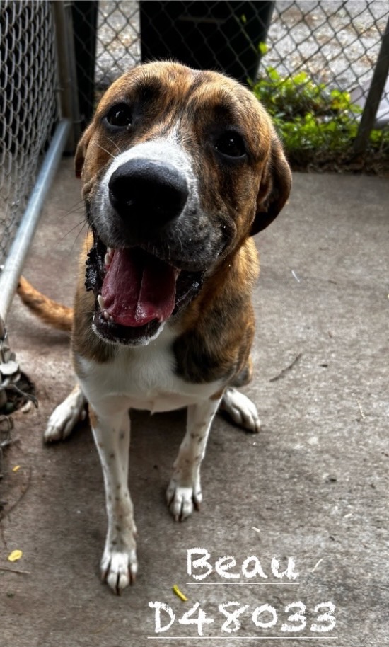 Beau is a young male Anatolian Shepherd mix. Fully vetted and will be chipped and neutered upon adoption. Beau is a big guy weighing in at 83 pounds and he is quite the social and happy guy. He is good on the leash unless he is excited but a harness will help correct his excitement. Very food motivated so training will be easy. He is very excited to meet other animals and people. Just a happy guy waiting for his forever home.