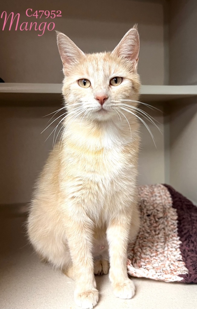 Mango is an adult female Domestic Shorthair. She is fully vetted, litter trained and will be chipped and spayed upon adoption. Come visit her in the Cat Room.